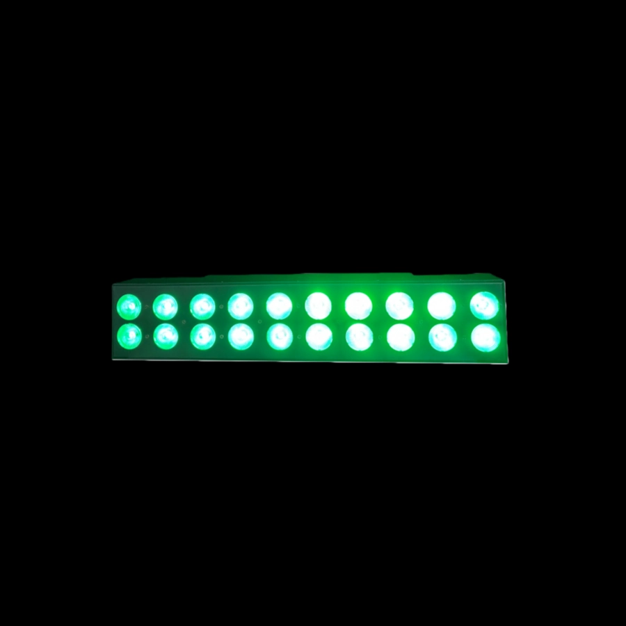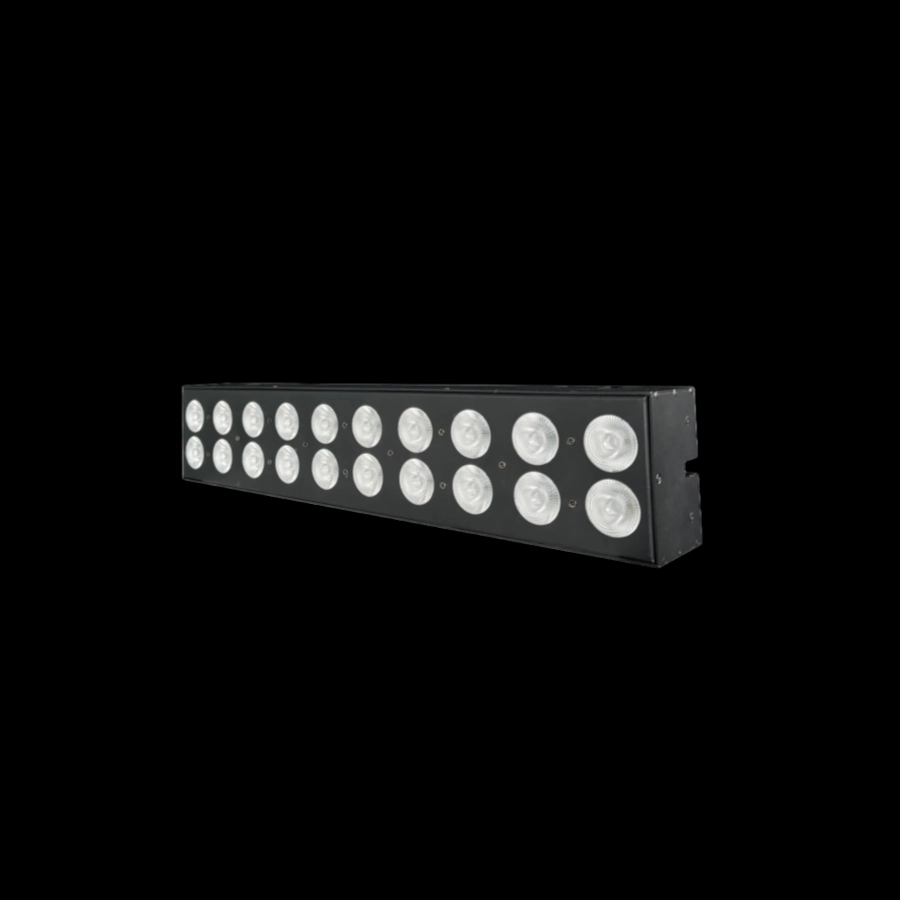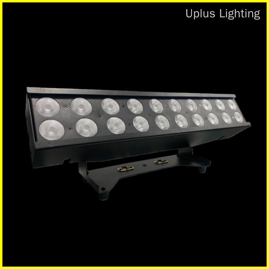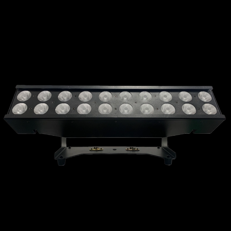 The indoor two-row 20*10W RGBW led pixel link bar features dual-row LEDs that provide ample brightness, support pixel-level independent light control and joint adjustment, and offer diverse lighting effects, making it suitable for indoor settings such as stages, bars, and studios.