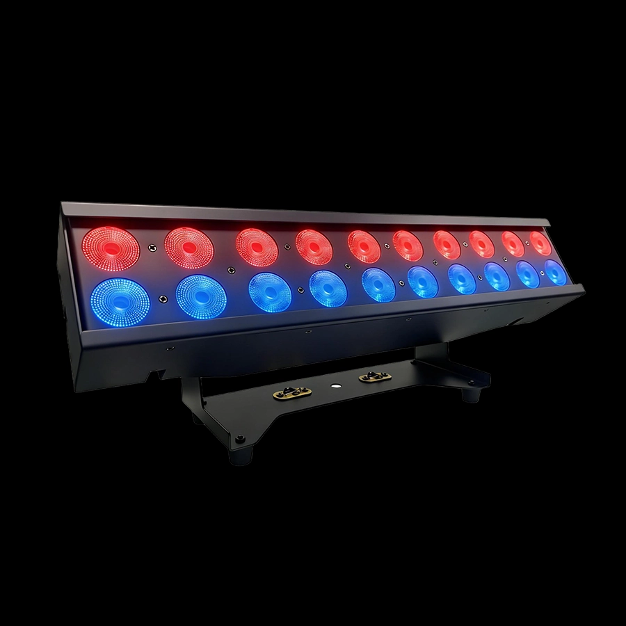 The indoor two-row 20*10W RGBW led pixel link bar features dual-row LEDs that provide ample brightness, support pixel-level independent light control and joint adjustment, and offer diverse lighting effects, making it suitable for indoor settings such as stages, bars, and studios.