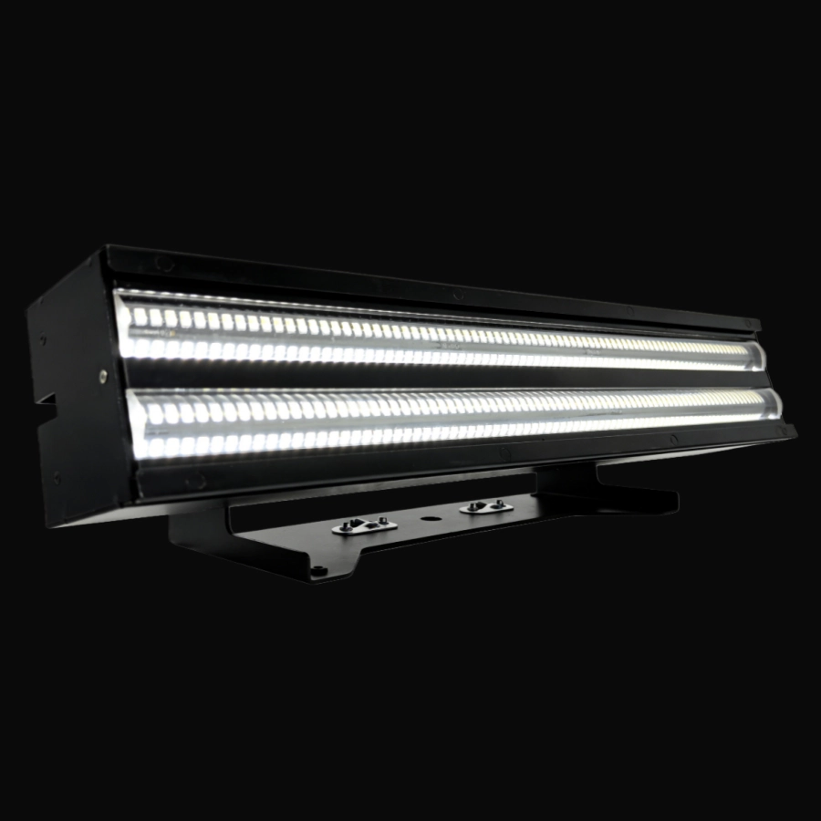 The indoor two-tube strobe bar light features adjustable strobe frequency, bright and rhythmic light, and is easy to install, making it suitable for creating the right atmosphere in indoor settings such as bars, small stages, and parties.