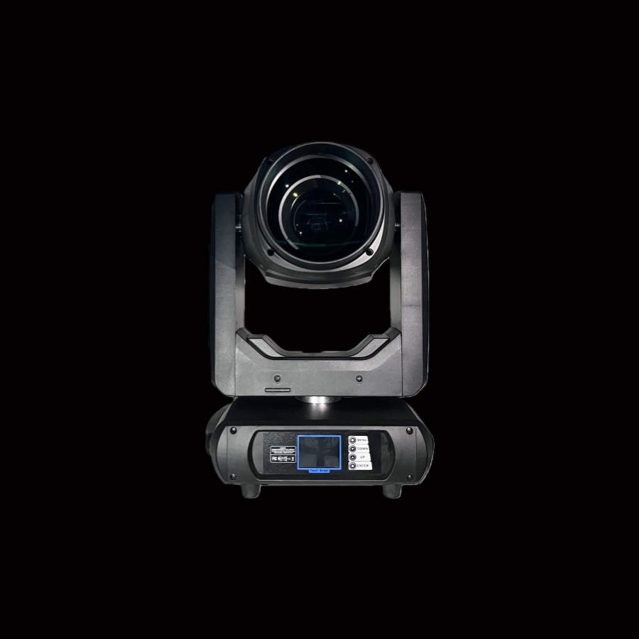 This 150W zoom LED moving head light uses a high-power LED light source and features adjustable zoom, allowing users to freely switch between sharp beams and wide-angle illumination. It supports various lighting effects such as dimming, strobe, and dynamic color mixing.