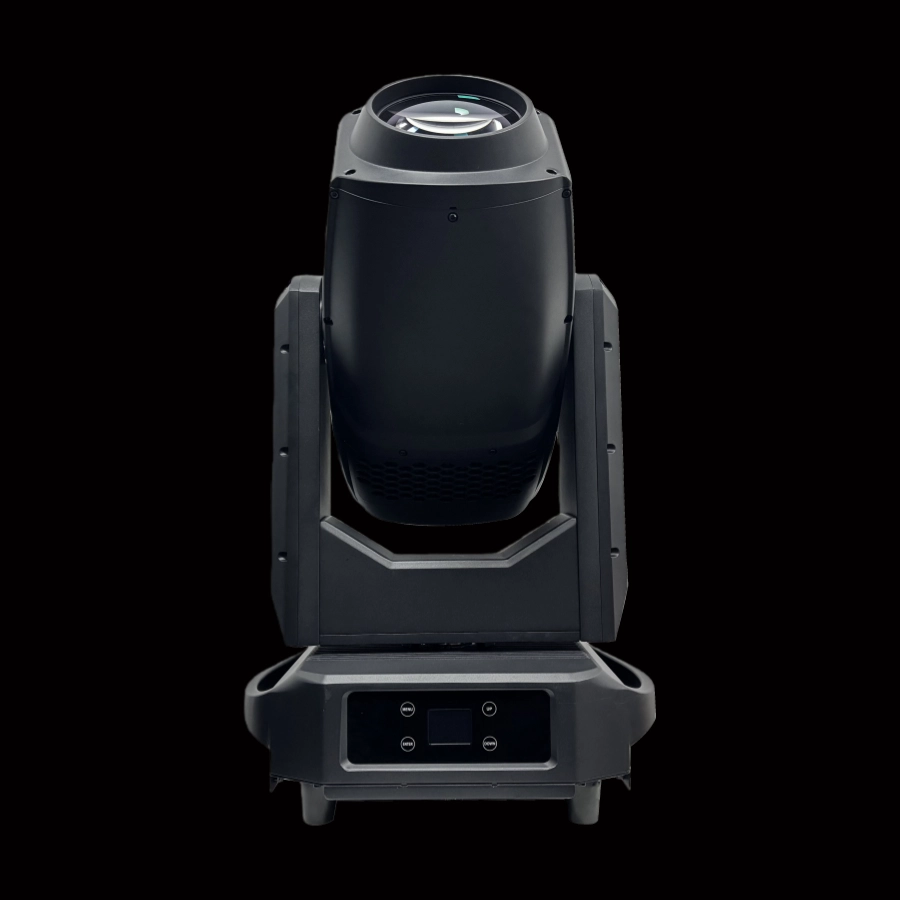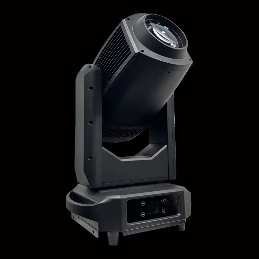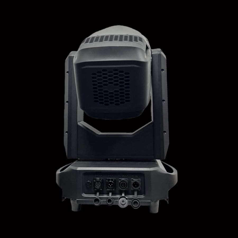 This 150W zoom LED moving head light uses a high-power LED light source and features adjustable zoom, allowing users to freely switch between sharp beams and wide-angle illumination. It supports various lighting effects such as dimming, strobe, and dynamic color mixing.
