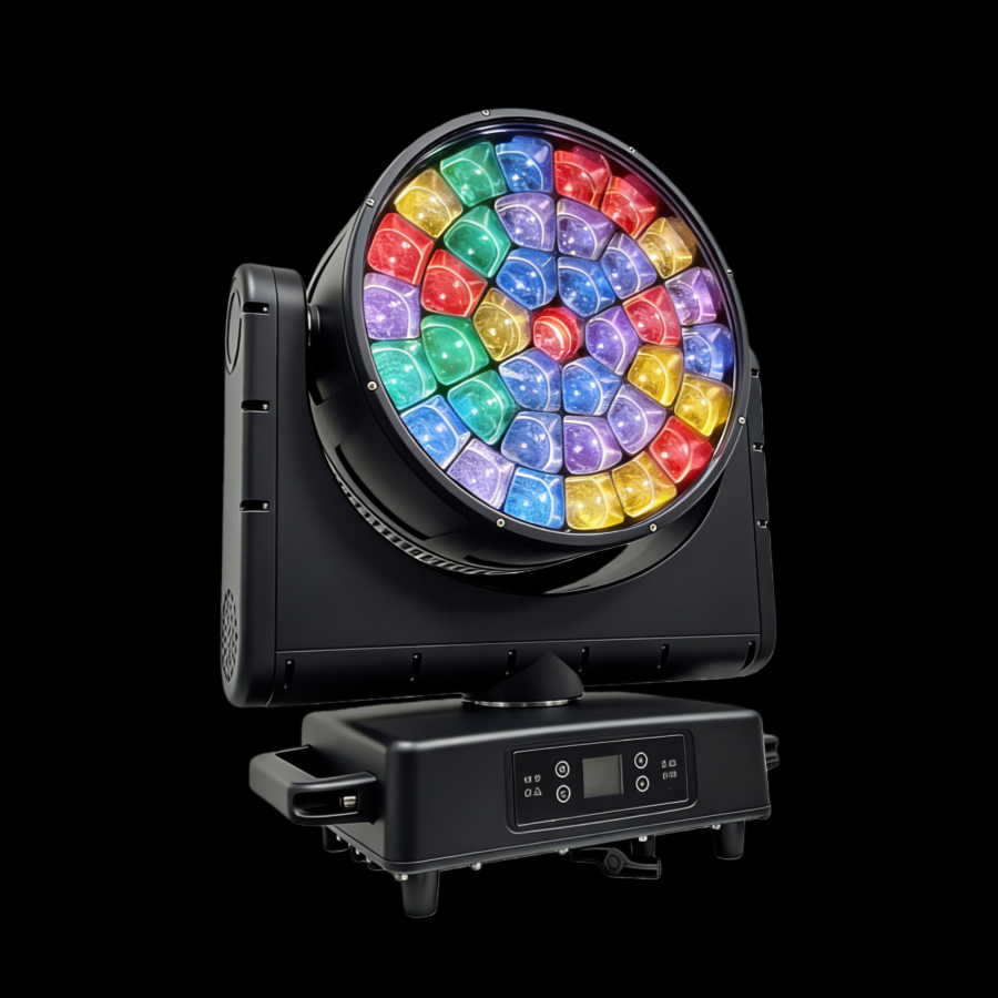 Le projecteur K25 : IP66 37*40W Wash Zoom & Bee Eye est un dispositif d'éclairage extérieur professionnel combinant éclairage mural et effets « œil d'abeille ». Il est équipé de 37 groupes de LED haute puissance de 40 W, offrant une puissance totale élevée. Grâce à sa conception optique professionnelle, il assure un mélange de couleurs fin et uniforme, couvrant l'ensemble du spectre chromatique.