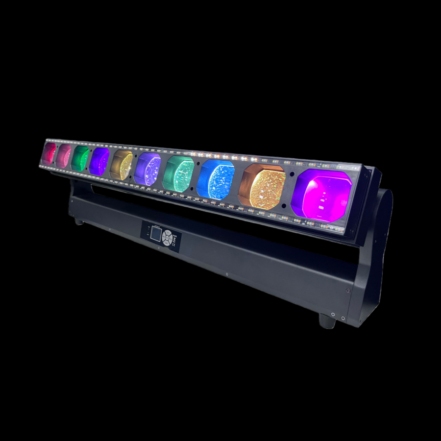 The 12*40W pixel zoom moving head light strip features independent light control for each LED, supports precise pixel-level adjustment and wide-range zoom, and offers rich lighting effects. It is suitable for stages, bars, cultural and tourism lighting, and other scenarios to create dynamic light and shadow effects.