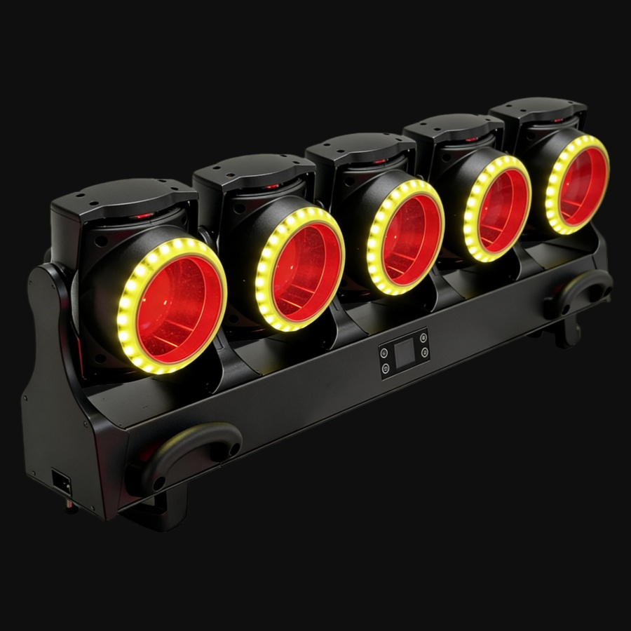 The 5*120W Pixel zoom LED bar moving head features independent pixel light control for each LED, coupled with precise zoom functionality, resulting in rich and layered light effects suitable for stages, bars, cultural and tourism lighting, and other scenarios.
