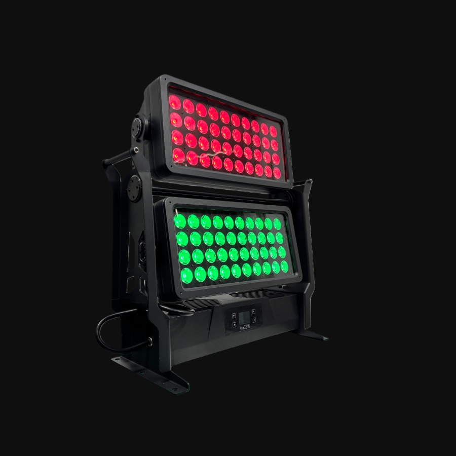 The Wireless DMX 48*20W IP65 Waterproof LED wash flood light supports wireless DMX control, provides uniform light output and rich color, and is suitable for outdoor engineering, architectural lighting, stage performances, cultural and tourism lighting and other scenarios.
