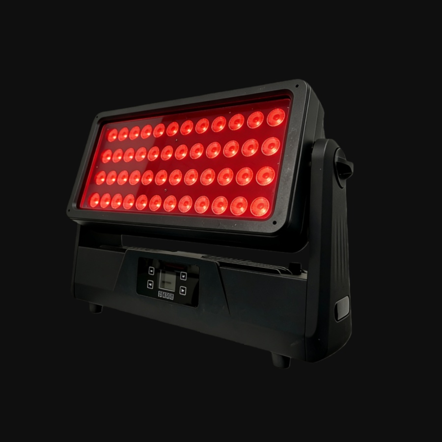 The Wireless DMX 48*20W IP65 Waterproof LED wash flood light supports wireless DMX control, provides uniform light output and rich color, and is suitable for outdoor engineering, architectural lighting, stage performances, cultural and tourism lighting and other scenarios.