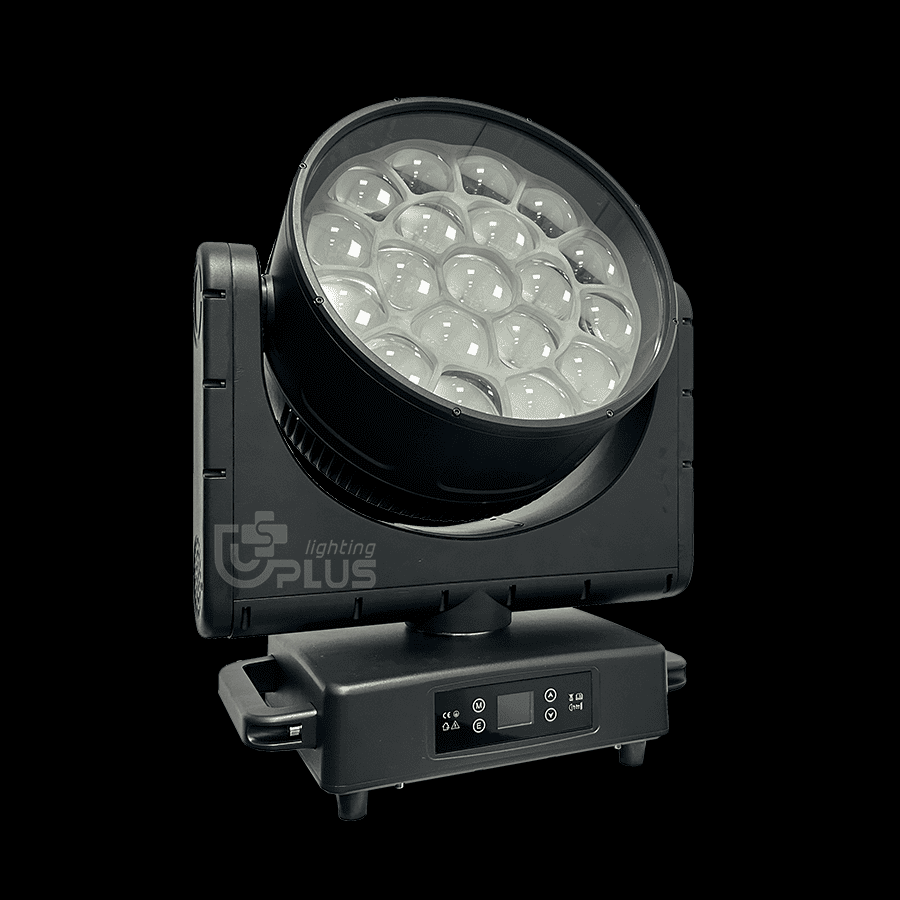 IP66 19*80W Wash Zoom Moving Head with 19 high-power LEDs, combining wall washing and color correction with a ring light effect. 6-50° wide zoom range, supports multiple dynamic lighting effects and flexible head movement.