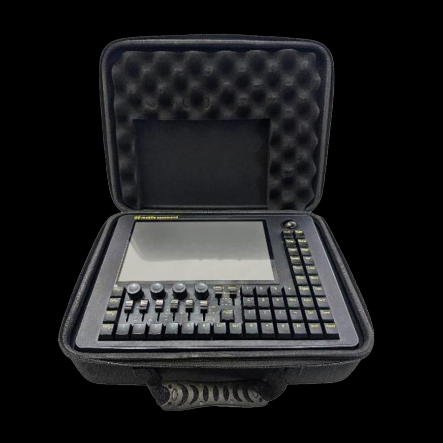 MA-Q0 professional lighting console, compact flight case design, 10.1" touchscreen, i5 CPU, 2048 DMX channels & expandable, perfect for small & medium stages and touring shows.